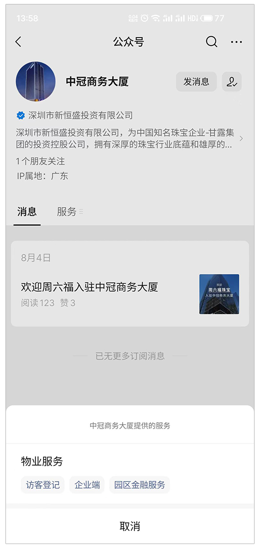 中冠商務大廈是由深圳市新恒盛投資有限公司開發建設,作為羅湖區重點項目,按照甲級寫字樓標準打造及提供品質服務,已成為該片區的地標物業之一,吸引了大批企業入駐。該寫字樓負1-3層為地下停車場,1-4層為商場,4層以上為寫字樓辦公區,需要對不同的人員進行管理,進入寫字樓的人員需要登記,確認身份后才能進入寫字樓,確保寫字樓的有序管理。